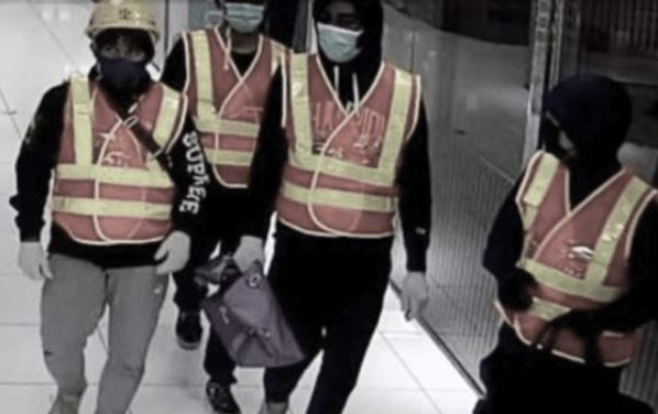 보안카메라에 찍힌 4명은 30-40대로 나머지 경찰이 나머지 2명도 쫒고 있으며 목격자를 찾고 있다. (업데이트 : 9시 46분 : 3명 체포됨)