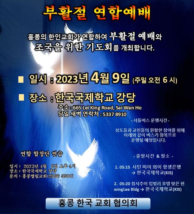 ■ 부활절 연합예배 :홍콩한국국제학교(KIS) 4월 9일(주일) 오전 6시