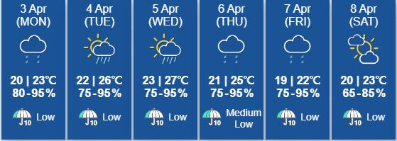 동쪽에서 불어오는 바람으로 향후 며칠은 습하고 아침저녁으로 안개가 끼겠다주 초반에는 지역적으로 비가 내리겠으며 후반부터는 점차 맑아 질 것으로 예상된다.
