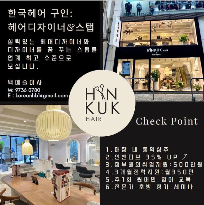 ▲ 한국헤어 : (커트, 염색, 펌 등) 문의 : 5122 4780 / 2147 1060