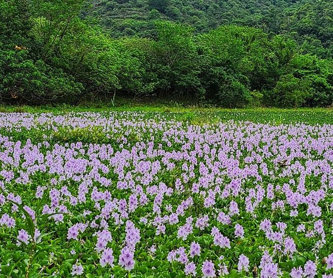 수백 송이의 부레옥잠(수중 히야신스)이 만개해 청자색 꽃바다를 이루고 있다부레옥잠은 습지나 수중에서 자라며 파랑보라 색깔이 있다. 7월부터 10월까지 꽃을 피우지만 기후변화로 최근 몇 년 동안은 5월부터 만개하기 시작했다.