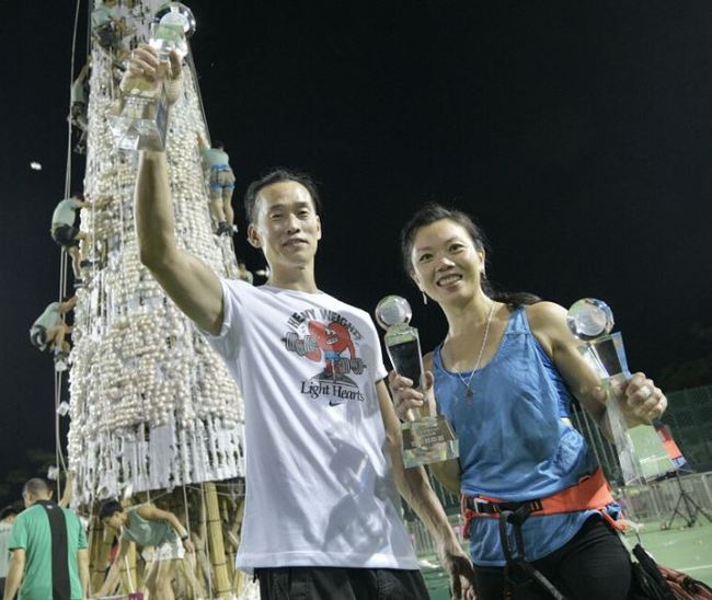 어제 27일, 3년만에 재개된 청쟈우 빵축제가 마무리됐다. 결승자 12명이 빵을 담기위해 탑에 기어 올랐다.