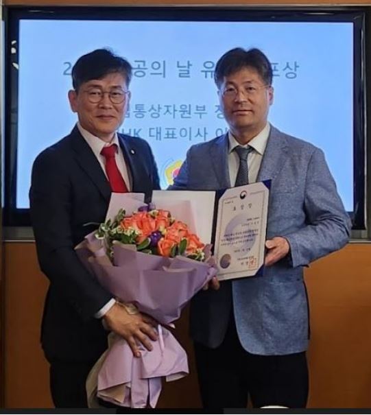 ▲ 산업통상자원부 장관상 수상자 이종석 한인상공회 부회장(왼쪽), 유형철 총영사