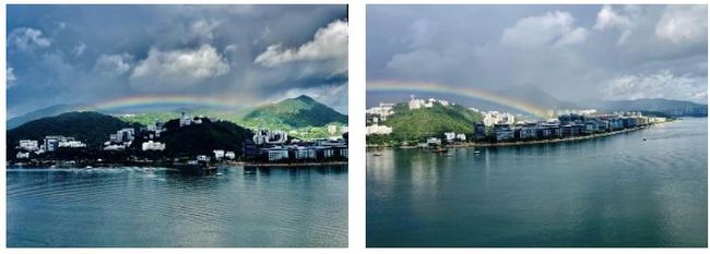 어제 오전, 사틴 지역 홍콩중문대 상공에 선명한 아름다운 무지개가 포착됐다. 무지개는 6분동안 지속됐다.