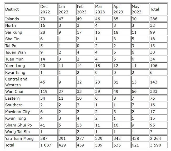 관련 당국은 2022년 12월부터 올해 5월까지 홍콩 18곳 전 지역에서 무면허 숙박시설로 의심되는 3590곳을 단속했다.