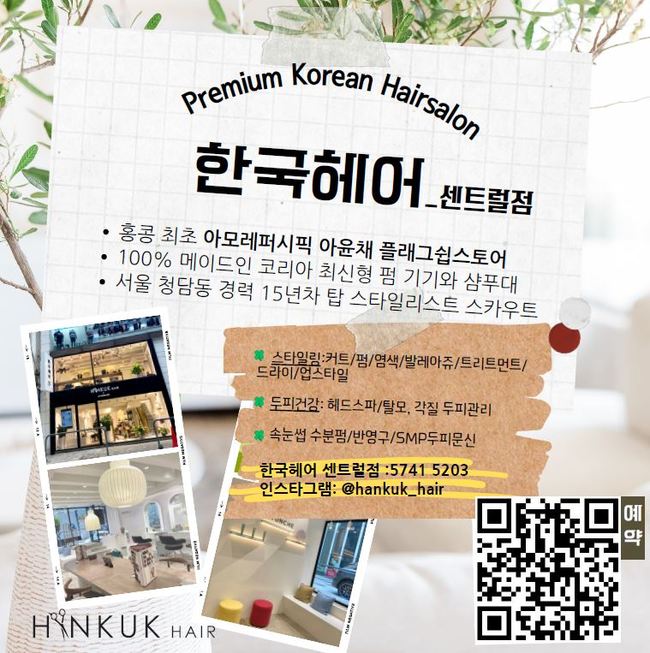 ▲ 한국헤어 : (커트, 염색, 펌 등) 문의 : 5122 4780 / 2147 1060