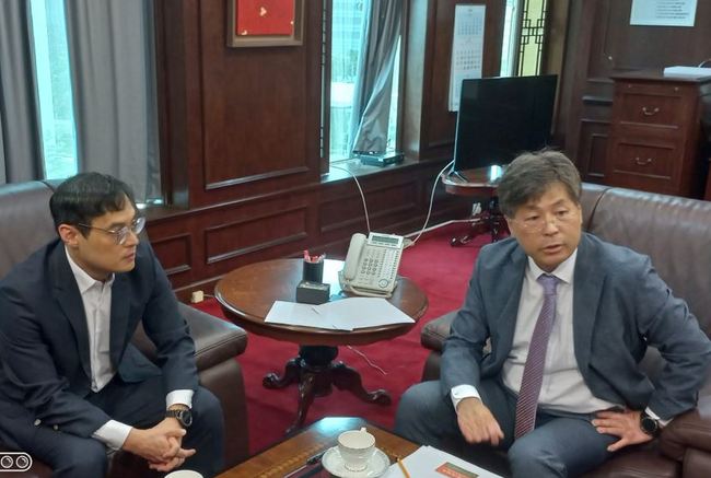 ▲ 유형철 총영사(오른쪽), 이학균 교민담당 영사