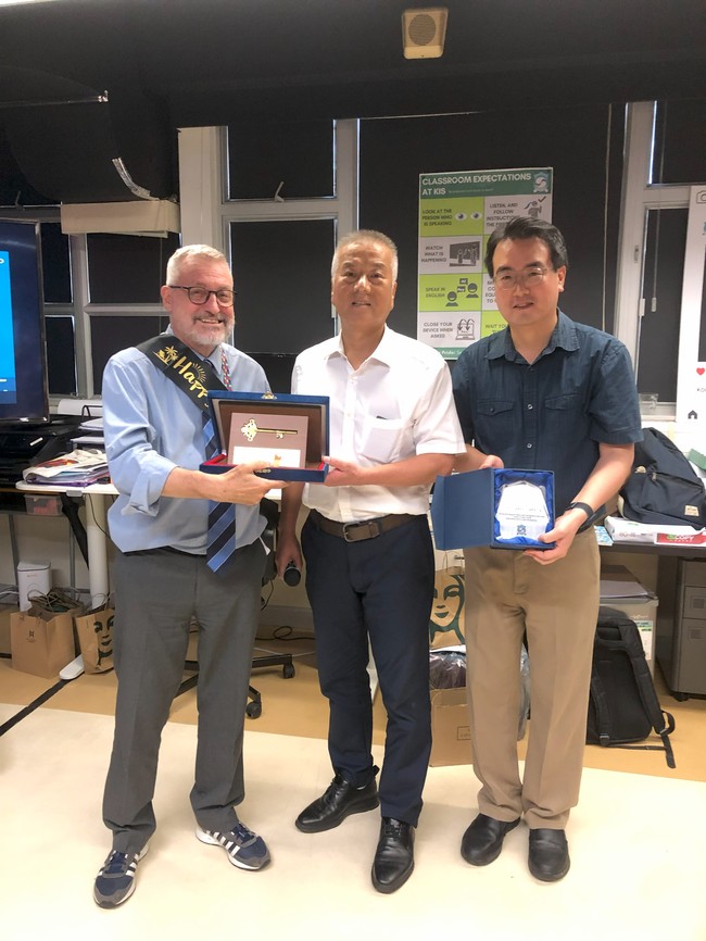 학교법인 이사회를 대표하여 퇴임식에 참석한 조성건 이사장은 “채드윅 교장의 학교에 대한 헌신과 애정 덕분에 한국국제학교가 명실상부한 홍콩 최고의 국제학교 중 하나로 자리매김할 수 있었다”며 채드윅 교장의 제 2의 인생 여정을 마음을 다해 응원한다는 덕담과 함께 감사패와 퇴임선물을 수여하였다.