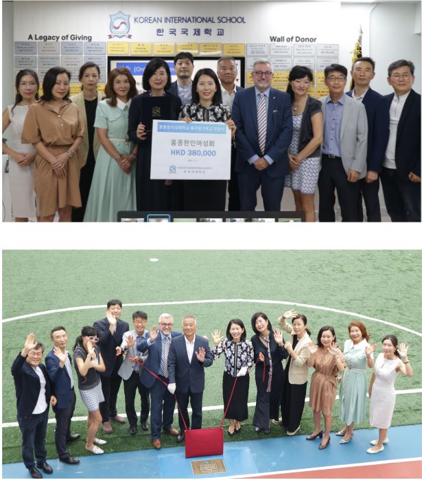 KIS는 총 hkd68만을 책정해 학생들이 마음껏 공을 찰 수 있는 미니 축구장 건설을 계획했다. 지난 7월 5일(수)홍콩 한국국제학교(이사장 조성건)는 학교 헤리티지룸에서 미니축구장 조성에 대한 기부금 기탁식을 개최하고 홍콩한인여성회 (회장 류치하)로부터 발전기금 38만 홍콩달러를 기부 받았다.