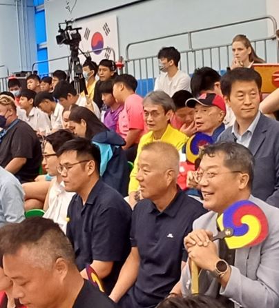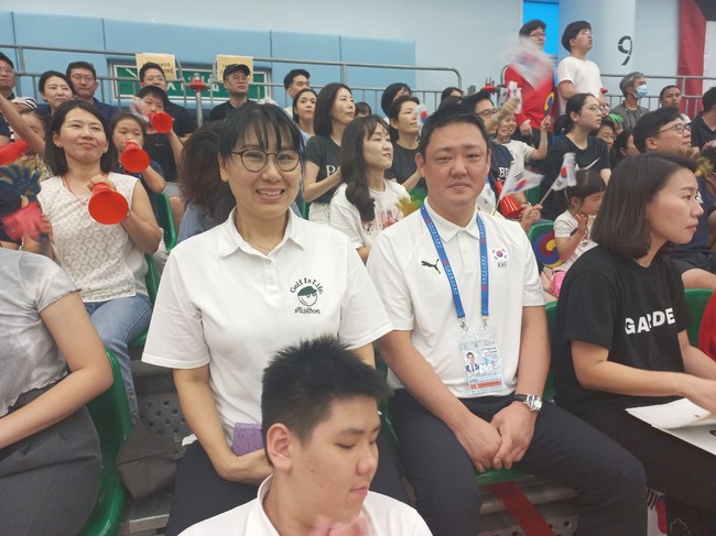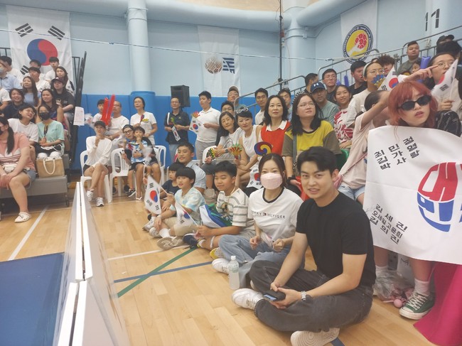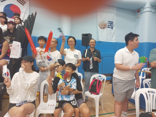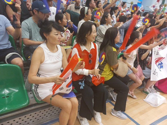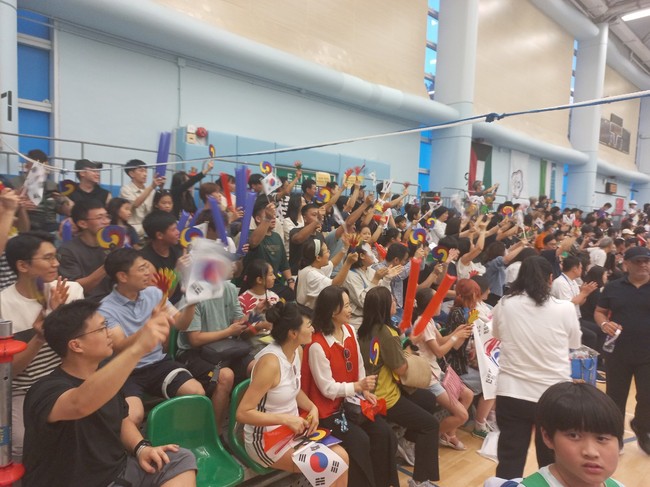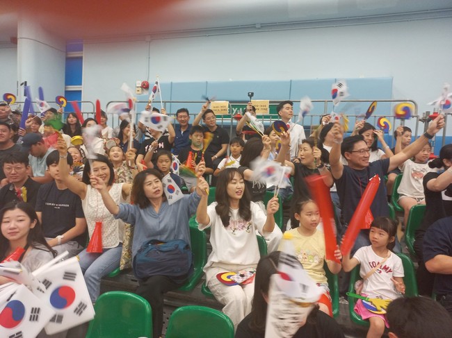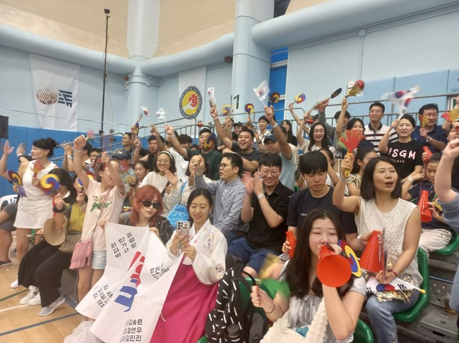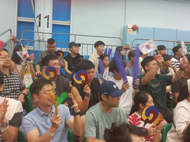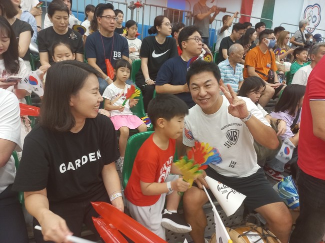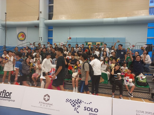 경기가 시작되고 한국팀의 선전골이 나올 때마다 응원석은 ‘대한민국’의 우렁찬 함성이 쏟아져 나왔다. 체육관의 모든 좌석은 만석으로 결승전의 열기와 응원이 뜨거웠다. 특히 홍콩한인 약 300명이상이 응원에 참여했으며 어린자녀들과 함께 참여한 가족들도 눈에 많이 띄었다.
