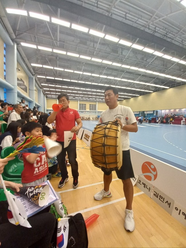 경기시작보다 일찌감치 도착한 한국문화원(원장 이영호)과 한인회 임원진들이 도착해 응원용 부채와 응원도구들을 나누어 주었다.