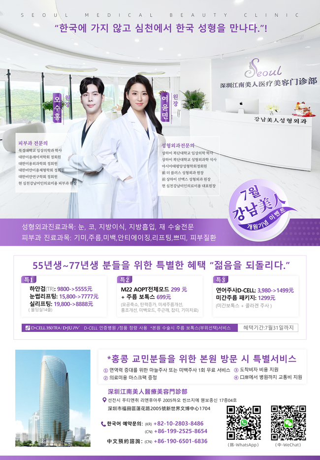 ▲ 콜라겐+ 피부과(홍콩 정식등록 피부 전문병원) : 각종 대회 심사위원 출신, 한국인 전문가