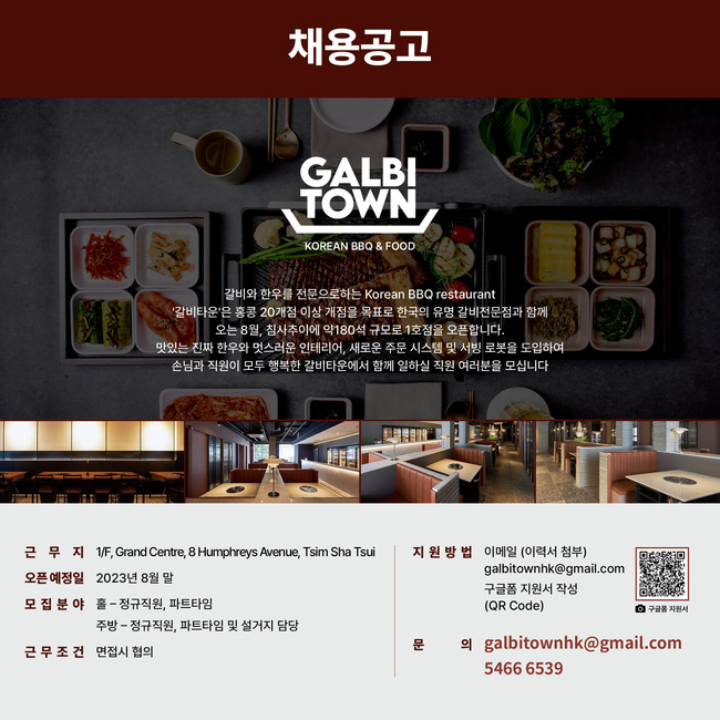 ■ 침사추이 새로운 한식당 - 갈비타운 : 온라인 구직신청 https://zrr.kr/HVuj **믿고 신뢰할 수 있는 한식당. 파트타임도 가능하다하니 구직 원하시는 분은 참고하시기 바랍니다.