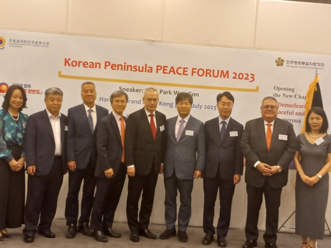 어제 20일 오후 6시, 주홍콩한국총영사관과 민주평화통일자문회의 주최로 하버그랜드호텔에서 “2023 한반도포럼”이 개최되었다. 영어스피커는 이화여대 북한학과 박원곤 교수로 “한반도 정세분석과 전망”에 대해 프리젠데이션을 진행했다.
