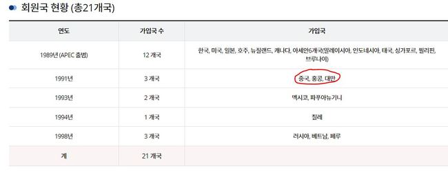 ▲ APEC 21개국 회원국가 출처 : 대한민국 외교부 웹사이트