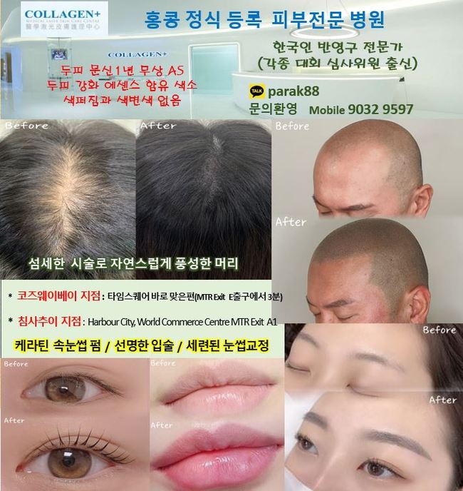 ▲ 콜라겐+ 피부과(홍콩 정식등록 피부 전문병원) : 각종 대회 심사위원 출신, 한국인 전문가