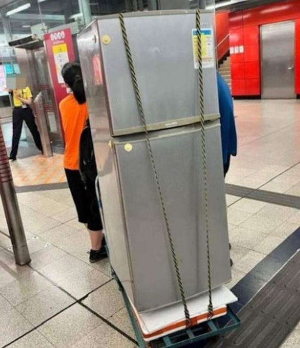 어제 2일, 자정 경, 정관오 MTR역에서 대형 냉장고를 2명이 옮기다 MTR직원에게 적발되어 구내를 떠나라는 요청을 받았다.