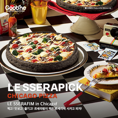 ▲ 굽네치킨/Goobne Chicken】 Goobne New Menu! 르세라핌이 콕! 찍은 르세라픽 시카고피자 출시! 오징어 먹물 블랙 딥디쉬 도우에 블랙페퍼 스테이크, 블랙 트러플 크림 소스와 세가지 치즈가 어우러져 풍미 가득 블랙 에디션 르세라픽 피자!