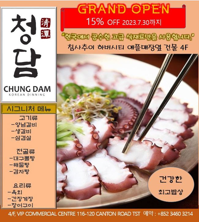■ 청담 한식당 : ■ 청담 한식당 : 오픈기념 15% 할인 7월 31일까지~~중요한 고객과의 회식, 가족과의 행복한 식사, 디너 파티, 최고의 한식, 식사후 분위기 바꿔서 야외테이블에서 시원한 생맥주 한잔~청담으로 오세요 예약 전화 : 3460 3214 (광동도 애플샆옆 건물 4층).4층.