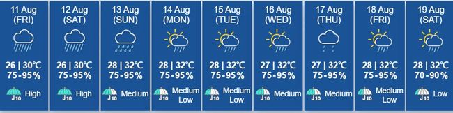 저기압이 광동해안 지역에 머물면서 많은 양의 소나기가 내리겠으며 내일도 천둥번개를 동반한 소나기가 내리겠다. 불안정한 날씨는 다음 초까지 이어지다가 점차 맑아 질것으로 예상된다.