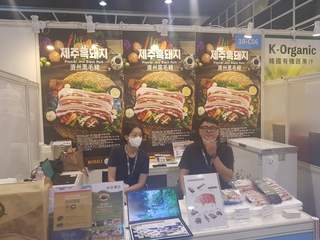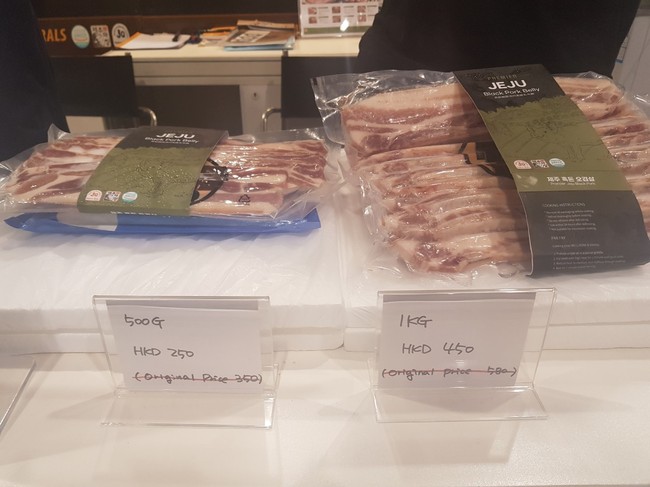 MORALS(HK) Co., LTD.부스에서는 제주흑돼지를 소개하고 있다. 해당업체는 주로 식당으로 공급하는 직수입업체이지만 전시 기간 중에는 소량 소매구매도 가능하다.
