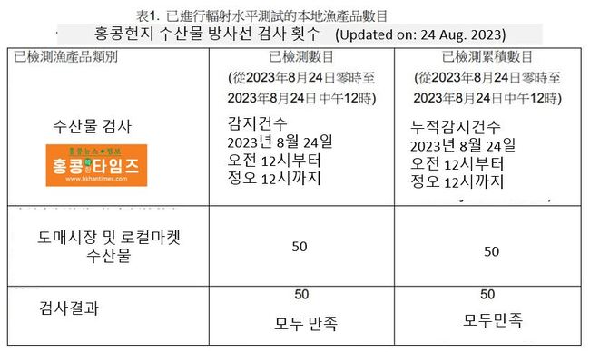 농수산보존부는 홍콩현지에서 어획한 수산물 샘플 50개를 검사한 결과 모두 안전범주 안에 들었다.
