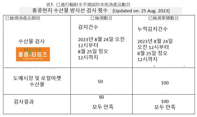 824일부터 25일 정오까지 식품환경부는 일본산 식품 253식품안전센터는 현지어획물 100개에 대해 방사능 검사를 실시했다모든 샘플이 검사에서 통과되었다.