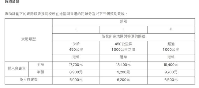 -연구보조금은 홍콩과 교육기관과의 위치에 따라 세가지로 구분되어 지급된다.