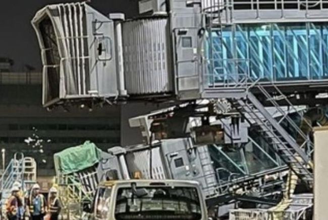 어제 4일 홍콩공항 제 1터미널 승객 탑승브리지가 갑자기 무너졌다. 소방차와 구급대원이 현장에 출동했으나 인명피해는 없었다.