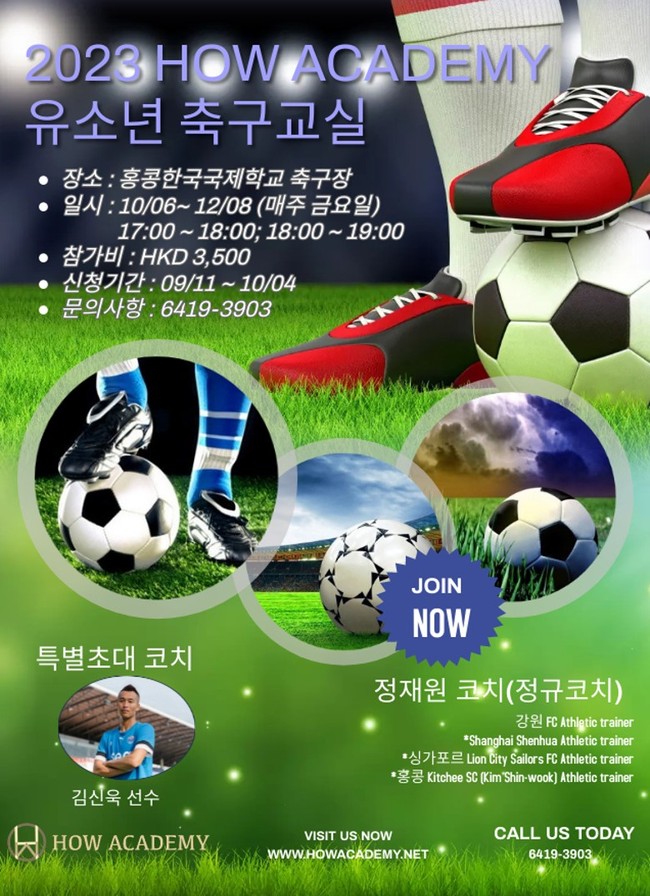 ▲HOW Academy : 축구교실 (특별초대 코치 김신욱 선수), K-Pop 댄스, 주산, 다독회 등 매주 금요일/토요일 수업 홍콩한국국제학교에서 진행. 문의 : 6419-3903