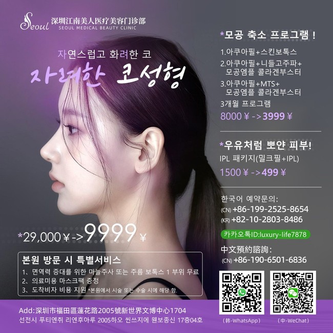 ■ 심천 강남미인 성형외과 개원 홍콩한인분들에게 드리는 주름보톡스 행사! 한 부위 무료시술/ 한국인 의사(상하이 복단대학교 의과대학교 졸업 / 북경대학교 의과대학교 졸업) 문의 : 카톡 luxury-life7878 /왓셉 86-199-2525-8654