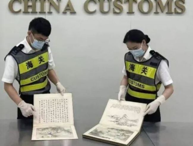중국 포텐 검문소에서 홍콩남성이 유물 밀반입을 체포됐다. 중국세관은 서화 64점 속에 청나라 유물 2점이 포함된 것을 확인했다.