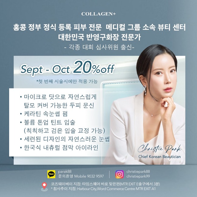 ▲ 콜라겐+ 피부과(홍콩 정식등록 피부 전문병원) : 각종 대회 심사위원 출신, 한국인 전문가