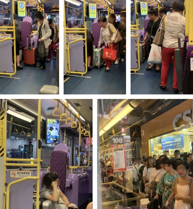 최근 코즈웨이 베이 지역에서 50명이 넘는 여행객들이 여행가방을 들고 시내버스를 기다리는 사진이 온라인에 게시되었다.