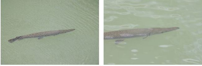 악어같은 머리와 날카로운 이빨을 가진 약 1미터 길이의 물고기가 물속을 따라 헤어치는 영상이 공개됐다.