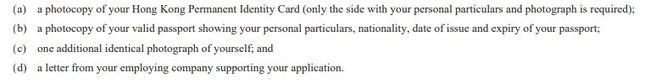 ▲ 준비서류 : 홍콩영주권아이디 복사본, 여권복사본, 칼라사진2장, 소속회사의 고용확인 레터 / 문의 : (852) 2824 6111 / 이메일 enquiry@immd.gov.hk (출처 : 홍콩이민국 웹사이트)