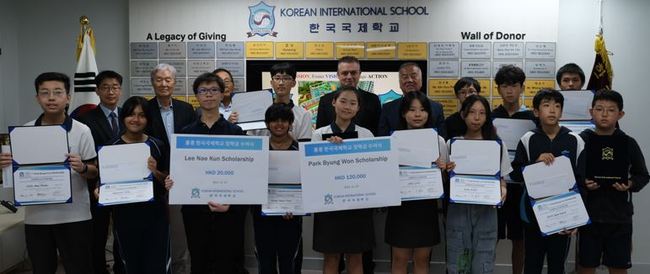 홍콩 한국국제학교(KIS)는 지난 11월 07일 MTS(박병원)장학금과 이내건 장학금 수여식을 학교 헤리티지센터에서 거행하였다. 이날 장학금 전달 행사는 박병원회장과 이내건 회장이 직접 참석하여 장학금 및 장학증서를 전달하였다.