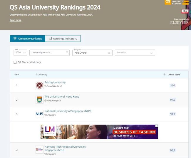- 2024년도 대학순위 : 1위 북경대학교/ 2위 홍콩대학교