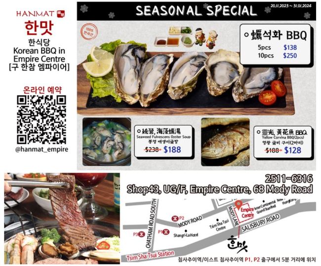 ■ 한맛 한식당(구 한참 엠파이어) : 겨울별미, "석화구이" hkd138,영광굴비 hkd128