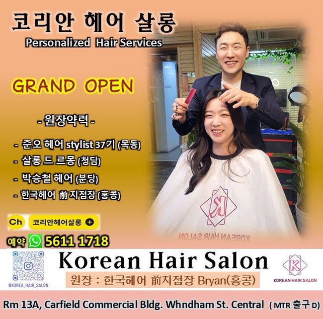 ▲ 한국헤어 : 아모레퍼시픽 프리미엄 헤어케어 브랜드, 아윤채 공식 파트너로서 프리미엄 약제만을 취급합니다. 한국인 헤어디자이너 9명, 센트럴/코베/침추 3개 지점 운영, 커트(290불 부터), 염색, 펌, 트리트먼트, 닥터모락 두피 탈모 관리, 반영구, SMP 두피문신
