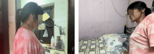 중국 동관에서 일하면서 두 딸과 함께 지내고 있었지만 남편이 병을 얻자 홍콩으로 돌아왔다. 펜데믹 동안 홍콩에 돌아오지 못하게 되자 시누이가 남편 간병을 맡았다. 간병보상으로 시누이에게 hkd5,000~hkd6,000을 지급한 것으로 알려졌다.