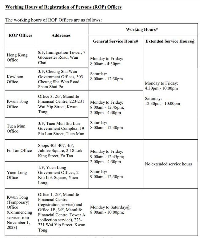 이민국은 홍콩신분증 등록 수요가 증가함에 따라 추가로 쿤통지역에 임시 사무소를 11월 1일부터 운영하고 있다.