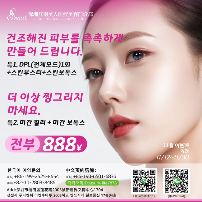 ■ 심천 강남미인 성형외과 개원 홍콩한인분들에게 드리는 주름보톡스 행사! 한 부위 무료시술/ 한국인 의사(상하이 복단대학교 의과대학교 졸업 / 북경대학교 의과대학교 졸업) 문의 : 카톡 luxury-life7878 /왓셉 86-199-2525-8654