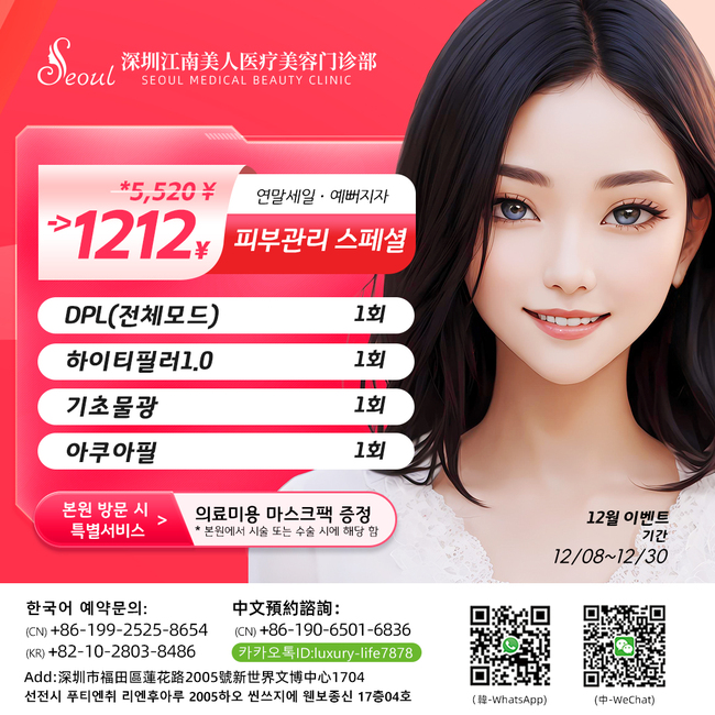 ■ 심천 강남미인 성형외과 개원 홍콩한인분들에게 드리는 주름보톡스 행사! 한 부위 무료시술/ 한국인 의사(상하이 복단대학교 의과대학교 졸업 / 북경대학교 의과대학교 졸업) 문의 : 카톡 luxury-life7878 /왓셉 86-199-2525-8654