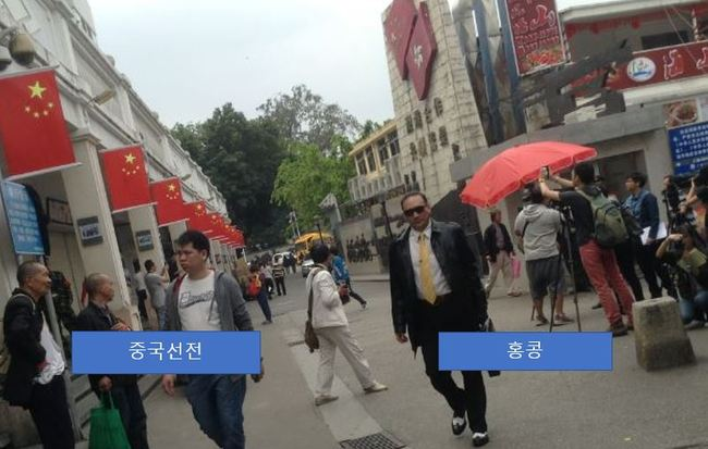 ▲ 온라인에 게시된 샤타우콕 국경지역 사진, 도로선상으로 왼쪽은 선전, 오른쪽은 홍콩이다.