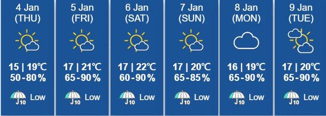 최저 기온은 8.1도였으며 12월 31일은 낮최고 25.7도까지 올라가 사상 가장 기온이 높은 새해전야를 기록했다.