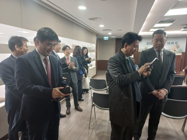 ‘2024년 신년하례식에는 공관 직원 및 한인단체 대표홍콩한인회 조성건 회장, 한인상공회 신성철 회장, 민주평통홍콩지부 송세용 회장, 한인요식업협회 이종석 회장, 한인회 임원, 여성회 임원, 코윈홍콩 임원, 지상사 임직원 등 약 60명이 참석해 새해 덕담을 나누고 홍콩한인사회의 발전과 결속을 다지는 '2024년 신년 인사회'시간을 가졌다. (사진홍콩한타임즈 이유성 기자)