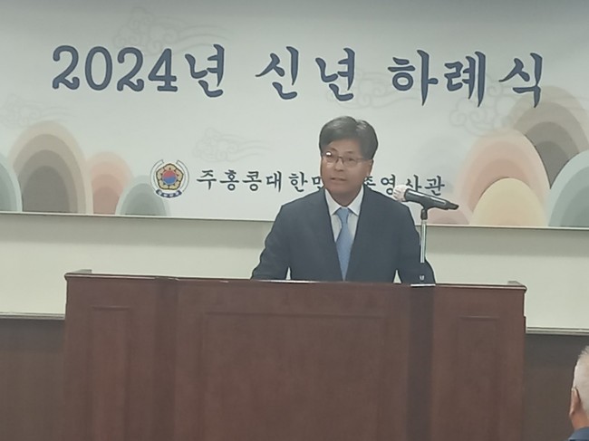 오늘 410주홍콩 한국 총영사관 5층 대강당에서 ‘2024년 신년하례식'이 열렸다. 김평국 민원담당 영사가 진행을 맡고 유형철 총영사가 신년사를 전했다.