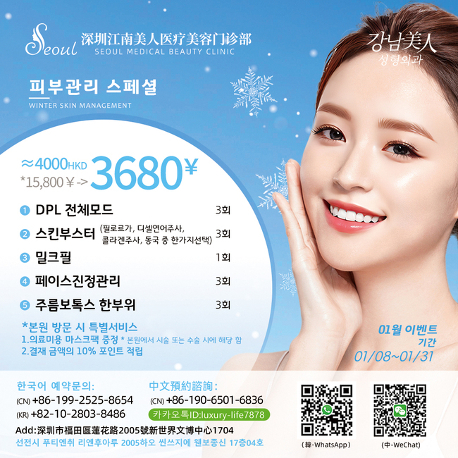 ■ 심천 강남미인 성형외과 개원 홍콩한인분들에게 드리는 주름보톡스 행사! 한 부위 무료시술/ 한국인 의사(상하이 복단대학교 의과대학교 졸업 / 북경대학교 의과대학교 졸업) 문의 : 카톡 luxury-life7878 /왓셉 86-199-2525-8654
