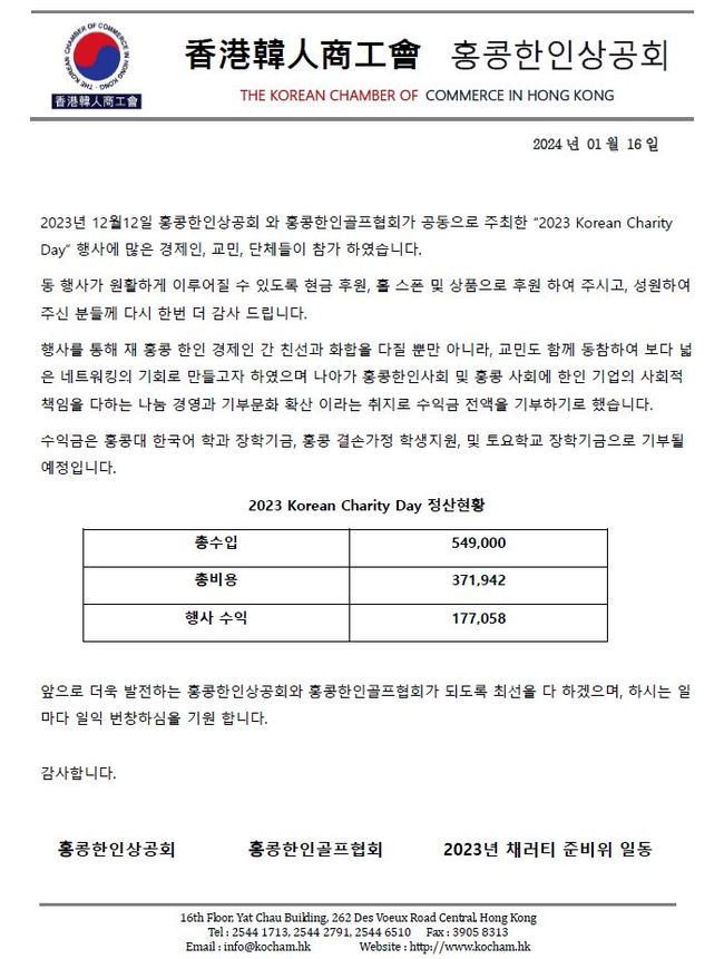 ■ 한인상공회 & 한인골프협회 "2023 Korean Charity Day 정산현황 "